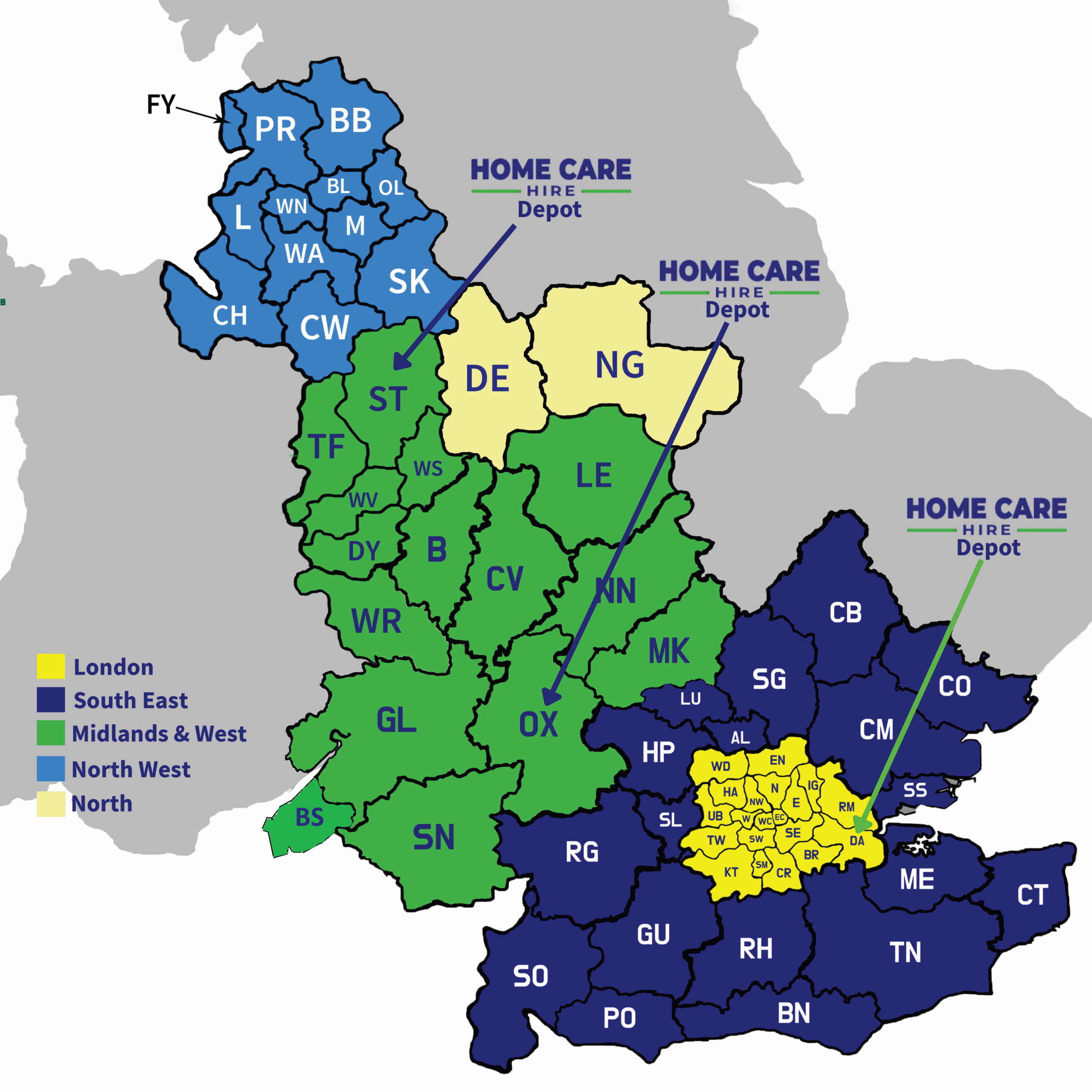 We have depots in London, Oxford and the Midlands and can supply speedy delivery to the majority of the UK's population. From London, we regularly install beds in Essex, Kent, Surrey, Bucks and Hertfordshire. From Oxford we deliver to Milton Keynes, Birmingham, Swindon, Gloucesteer, Bristol and the surrounding areas. We also serve Nottingham, Leicester, Liverpool, Chester Stoke and other cities surrounding Manchester.