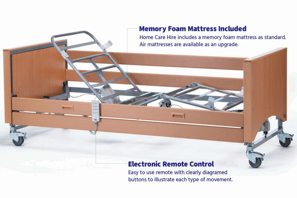 View Our Hospital Bed PackageHome Care Hire is a provider of care equipment with over ten years of experience in our industry. We specialise in the provision of hospital beds with pressure care mattresses and also provide premium Riser Recliner Chair, Stand Aids and Hoists.