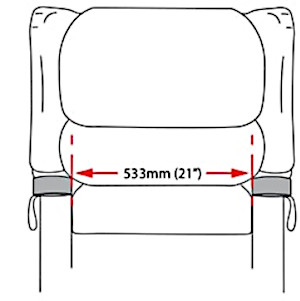 Removeable arm tops enable a change of seat width from 21 to 19 inches reversing the arms of the chair.