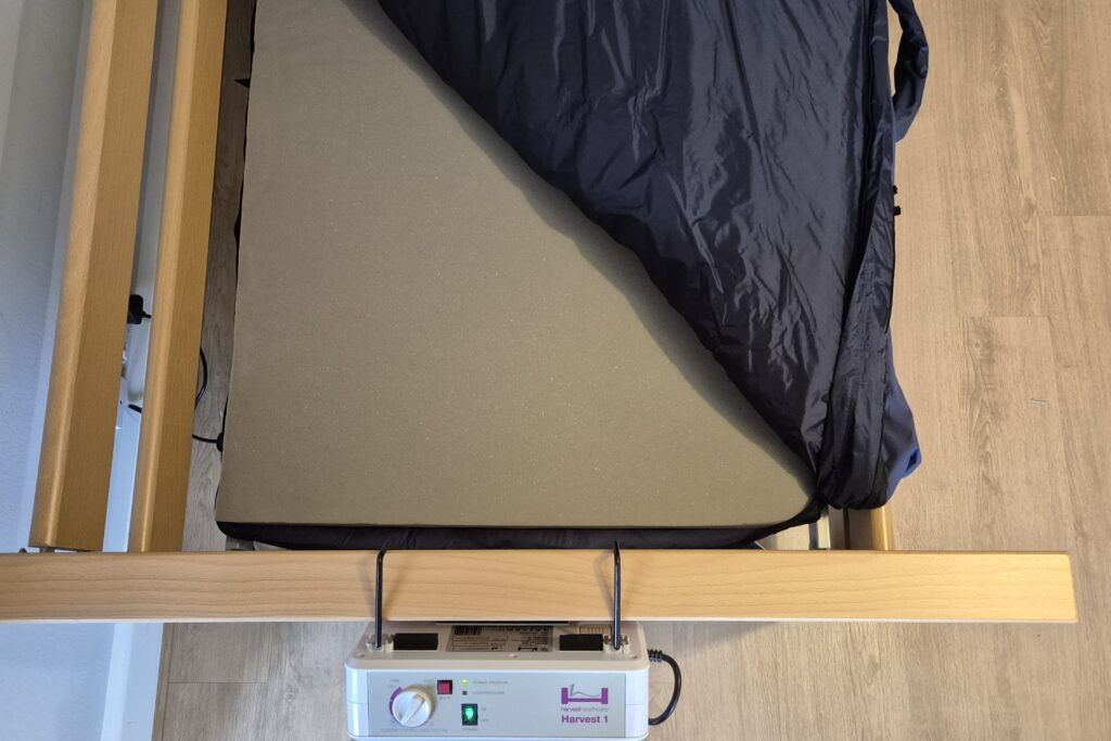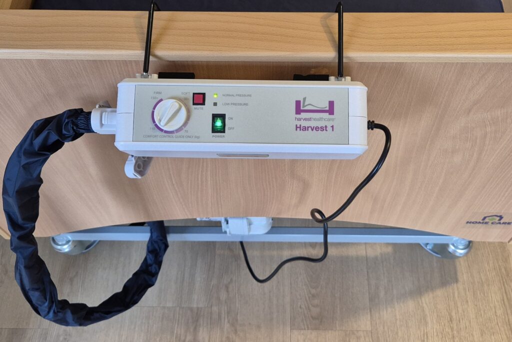 Our air mattress system is manufactured in the United Kingdom by Harvest Healthcare. After trialling several systems and listening closely to customer feedback, we have found this model to be the most comfortable, reliable and user‑friendly option for home‑care environments.